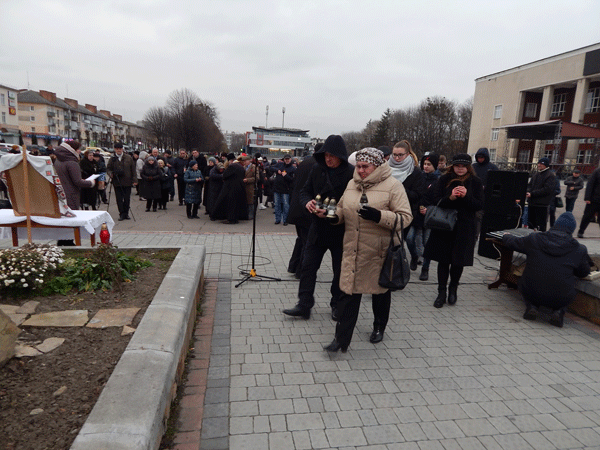 Представники ДП «Львіввугілля»: керівники відокремлених та допоміжних підприємств, голови первинних профспілкових організацій зі своїми спілчанами та шахтарськими колективами вшанували пам’ять невинних жертв найстрашнішого в історії людства Голодомору хвилиною мовчання та поклали запалені свічки до пам’ятного Хреста на Вічевій площі.