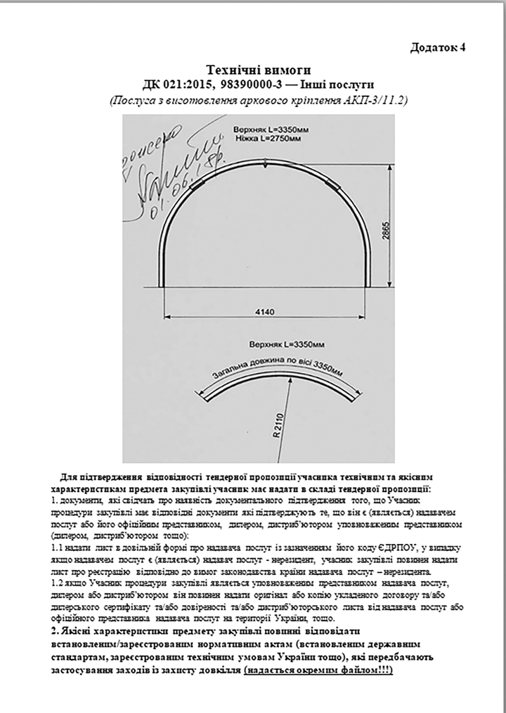 ПОСЛУГА З ВИГОТОВЛЕННЯ АРКОВОГО КРІПЛЕННЯ АКП-3/11.2 ДЛЯ ПОТРЕБ ВІДОКРЕМЛЕНИХ ПІДРОЗДІЛІВ – ШАХТ ДП “ЛЬВІВВУГІЛЛЯ”. ДЖЕРЕЛО ФІНАНСУВАННЯ – КОШТИ ПІДПРИЄМСТВА