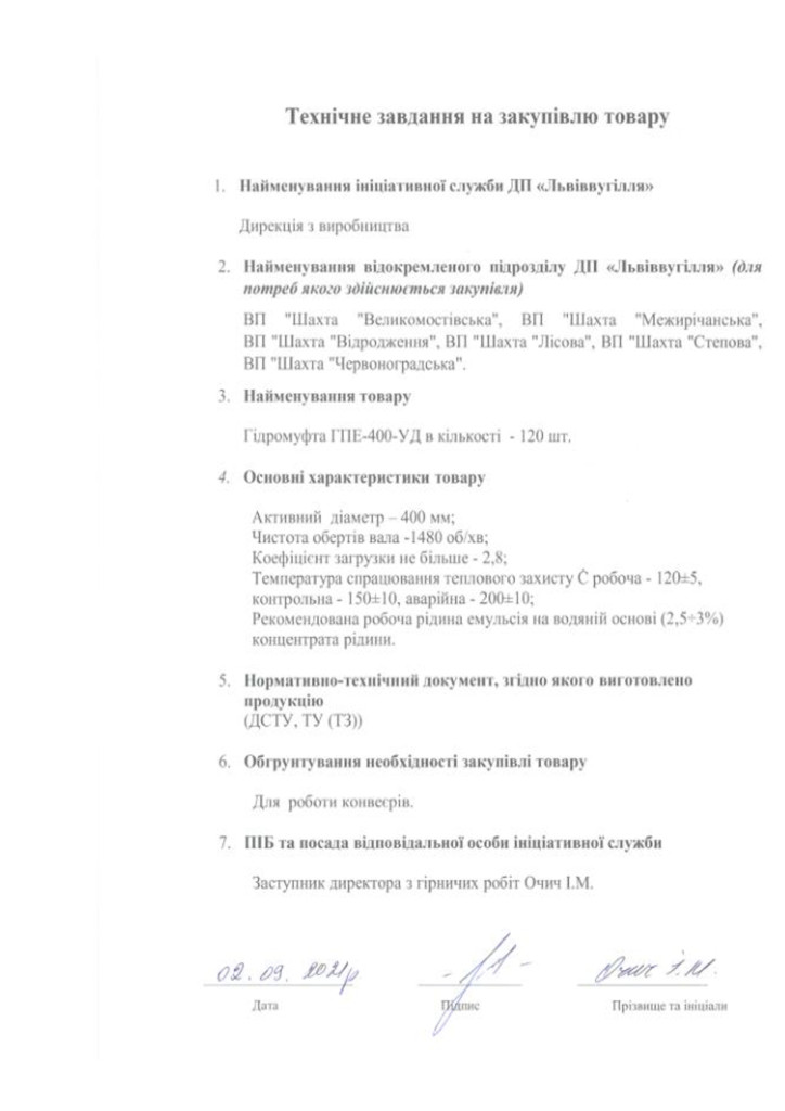ДП «Львіввугілля» оголосило процедуру конкурентної закупівлі.