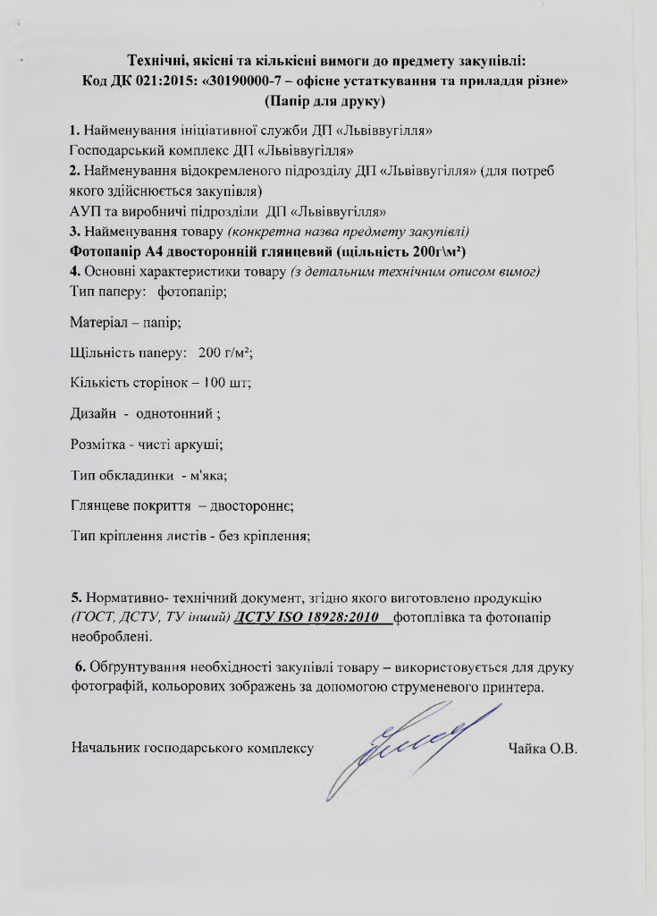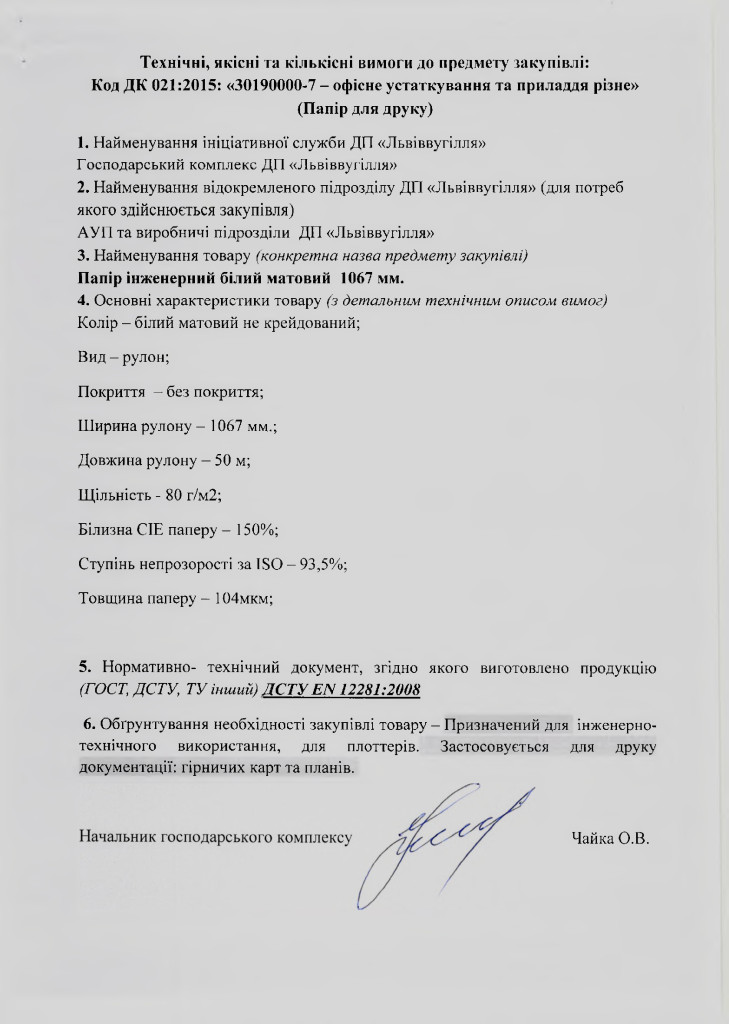 ПАПІР В АСОРТИМЕНТІ ДЛЯ ПОТРЕБ АУП ТА ВИРОБНИЧИХ ПІДРОЗДІЛІВ ДП «ЛЬВІВВУГІЛЛЯ»