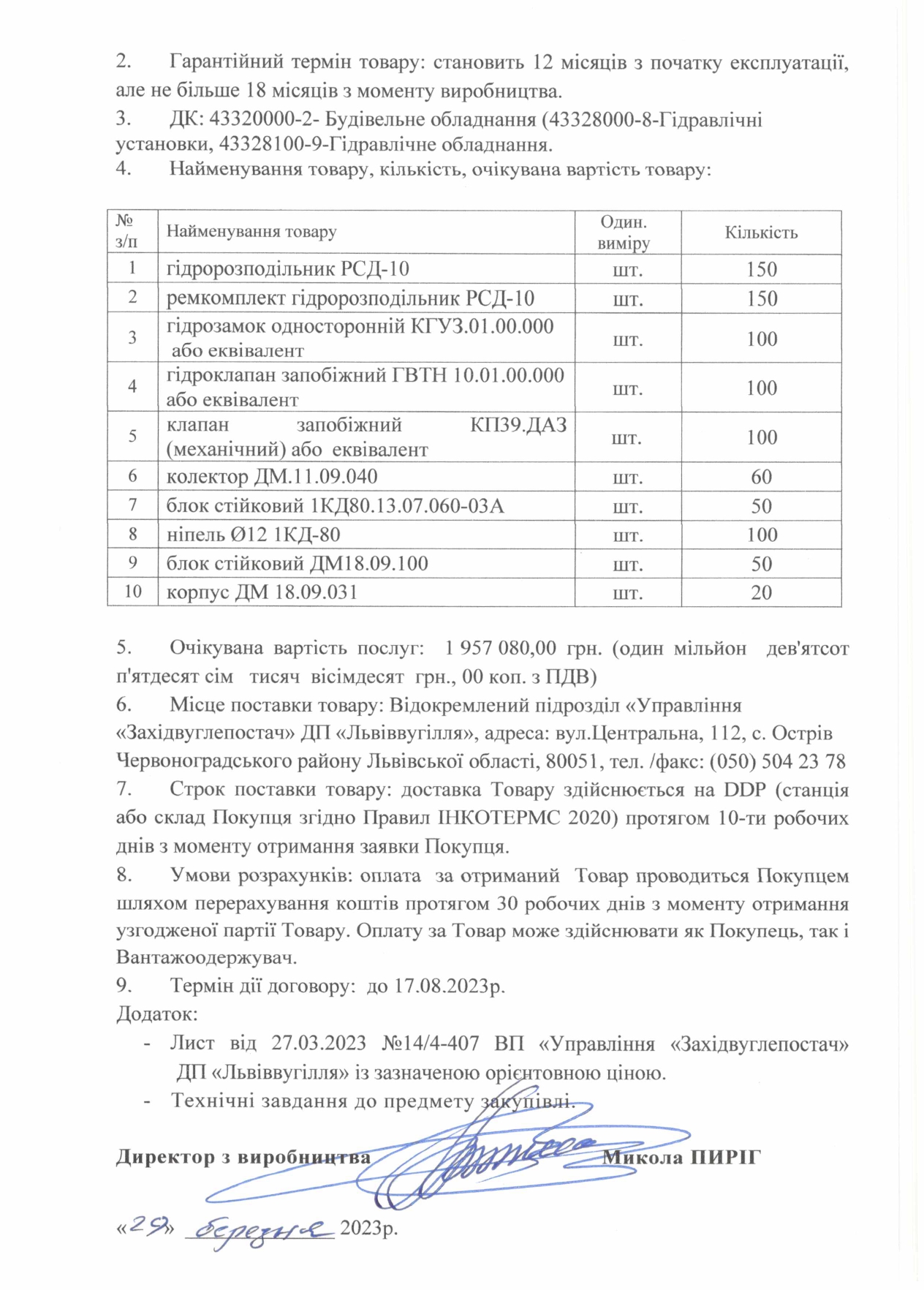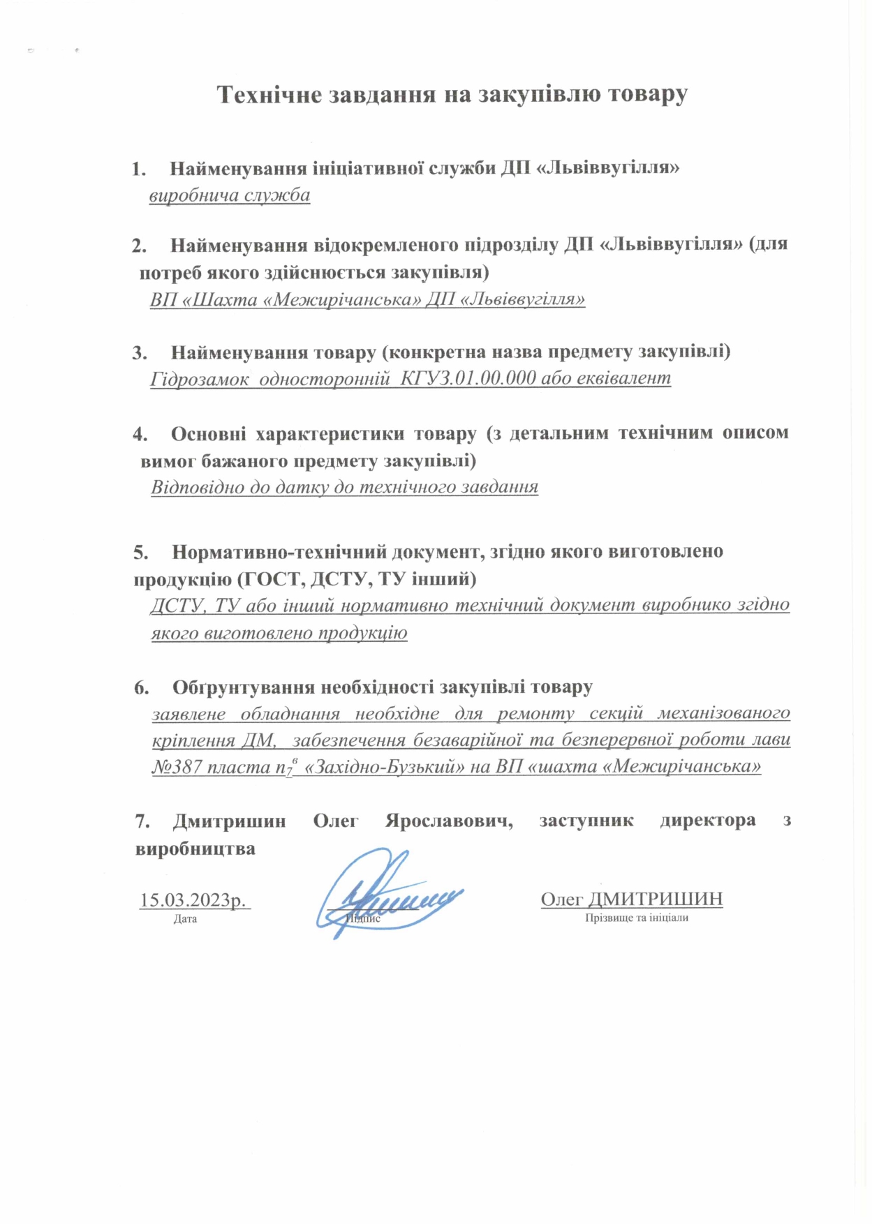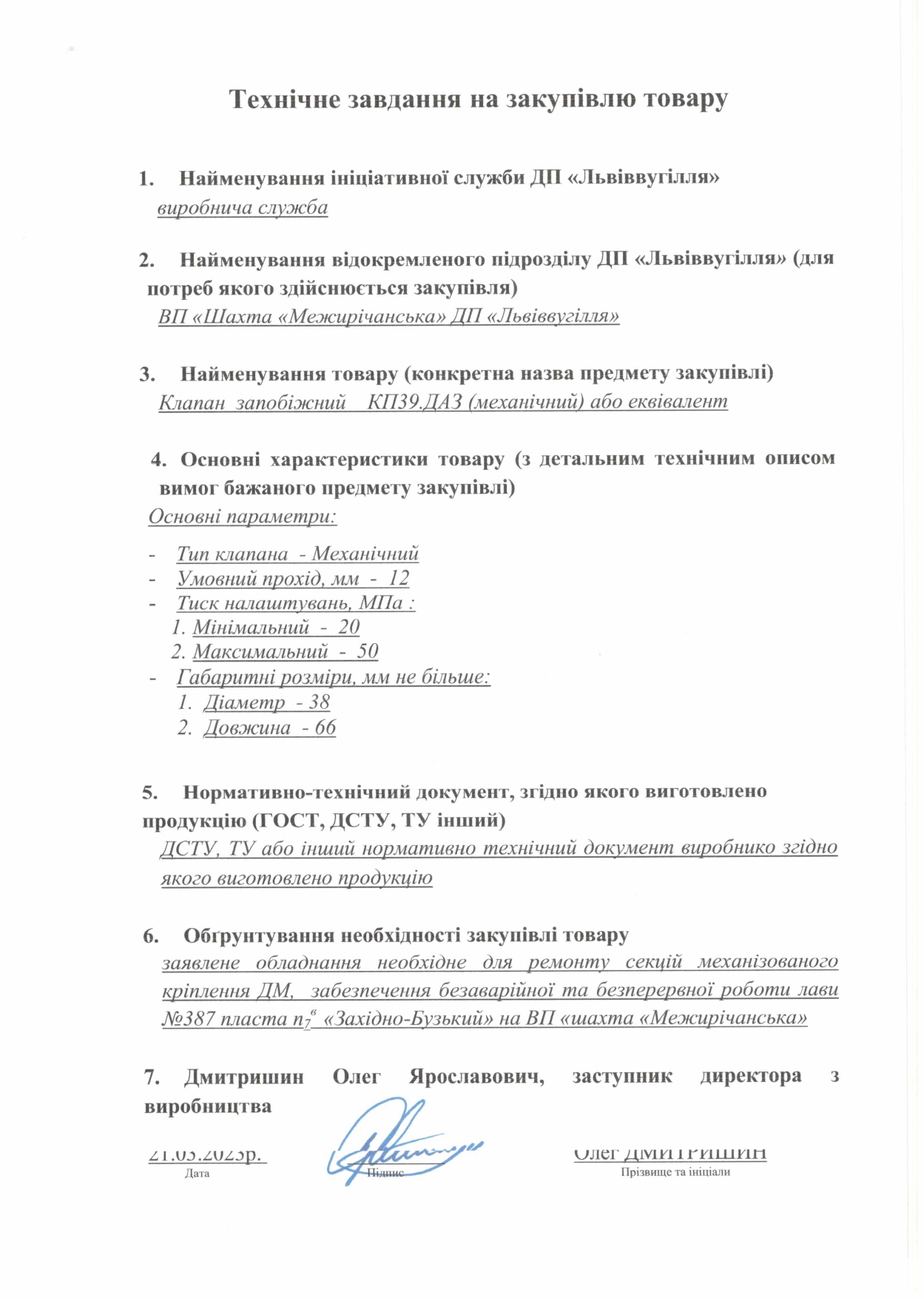 ОГОЛОШЕНО ПРОЦЕДУРУ КОНКУРЕНТНОЇ ЗАКУПІВЛІ Опубліковано 04.04.2023 Відповідно до постанови Кабінету Міністрів України від 16 грудня 2020 р. №1266 повідомляємо: ДП «Львіввугілля» оголосило конкурентної процедуру закупівлі. ЧАСТИНИ СЕКЦІЙ МЕХАНІЗОВАНОГО КОМПЛЕКСУ ДМ Ідентифікатор закупівлі: UA-2023-04-04-011942-a Очікувана вартість: 1 957 080,00 UAH з ПДВ