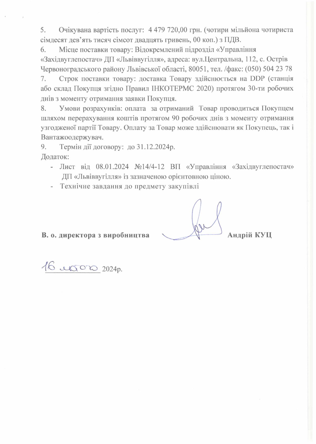 ДП «Львіввугілля» оголосило конкурентної процедуру закупівлі.