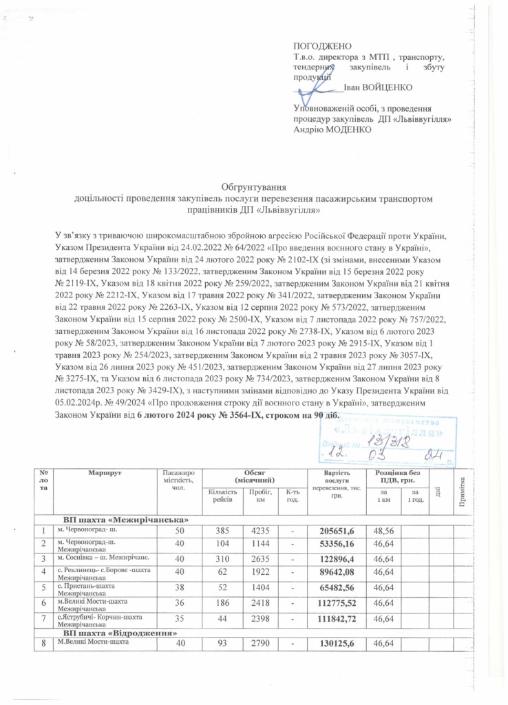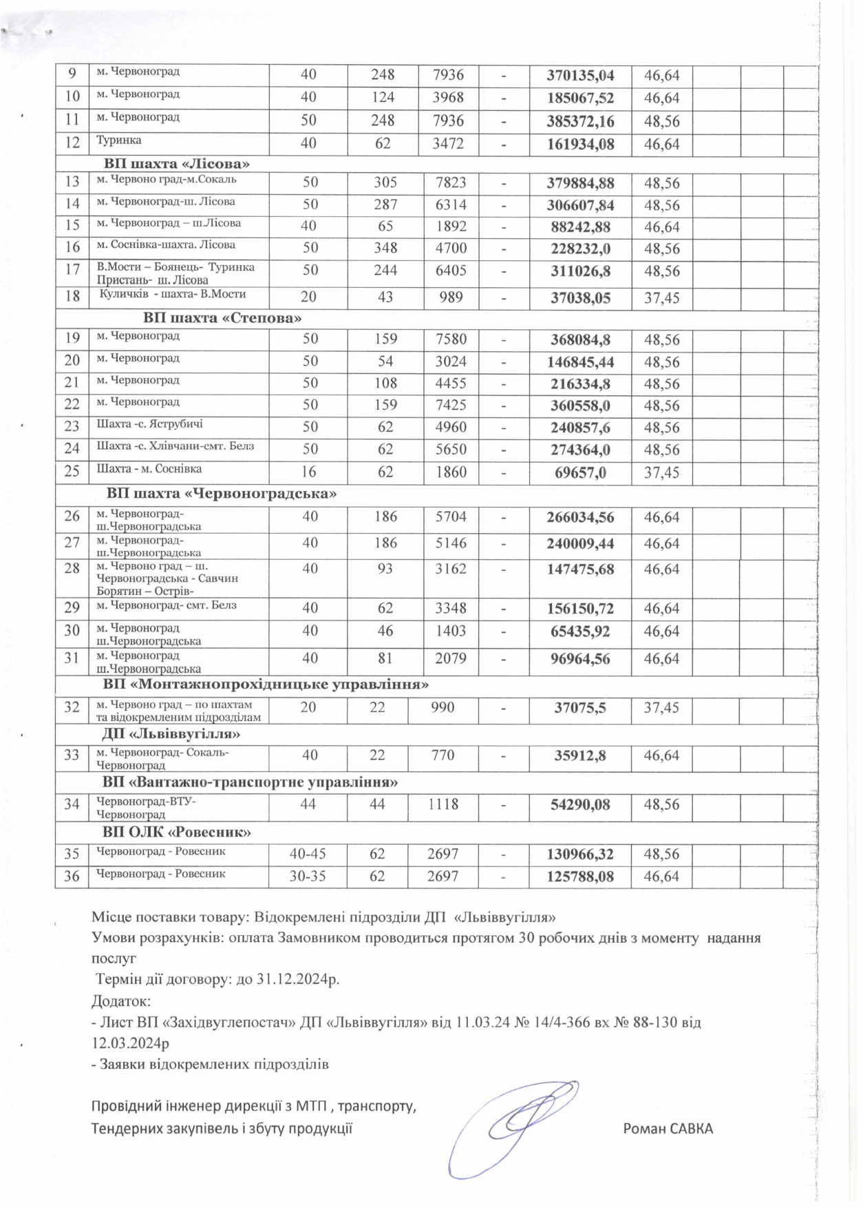 ПЕРЕВЕЗЕННЯ ПРАЦІВНИКІВ ВП ШАХТА “ЛІСОВА” ДП “ЛЬВІВВУГІЛЛЯ” ДО МІСЦЯ РОБОТИ ЗА ГРАФІКОМ