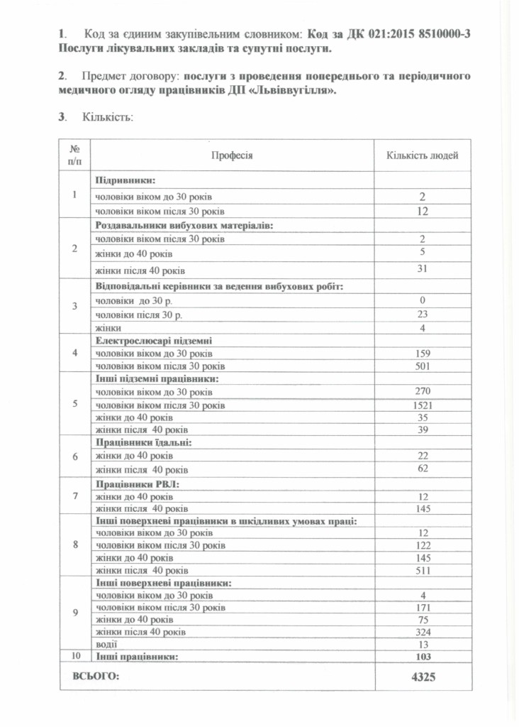 МЕДИЧНИЙ ОГЛЯД ПРАЦІВНИКІВ ДП «ЛЬВІВВУГІЛЛЯ» (ВП ДП «ЛЬВІВВУГІЛЛЯ»)