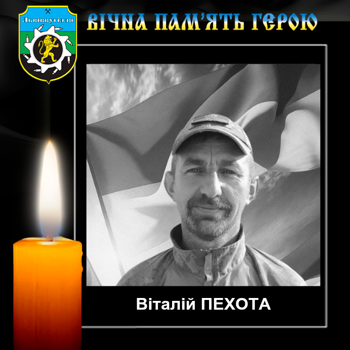 ДОВІДКА Віталій Миколайович Пехота народився у с. Муроване 2.04.1977 року. Працював на шахті «Степова» ДП «Львіввугілля» з 2011 року прохідником на ДПР №2. У 1993-2011 роках працюв на шахті “Межирічанська”. Мешкав у м. Шептицький Львівської області. У скорботі за загиблим рідні та близькі.