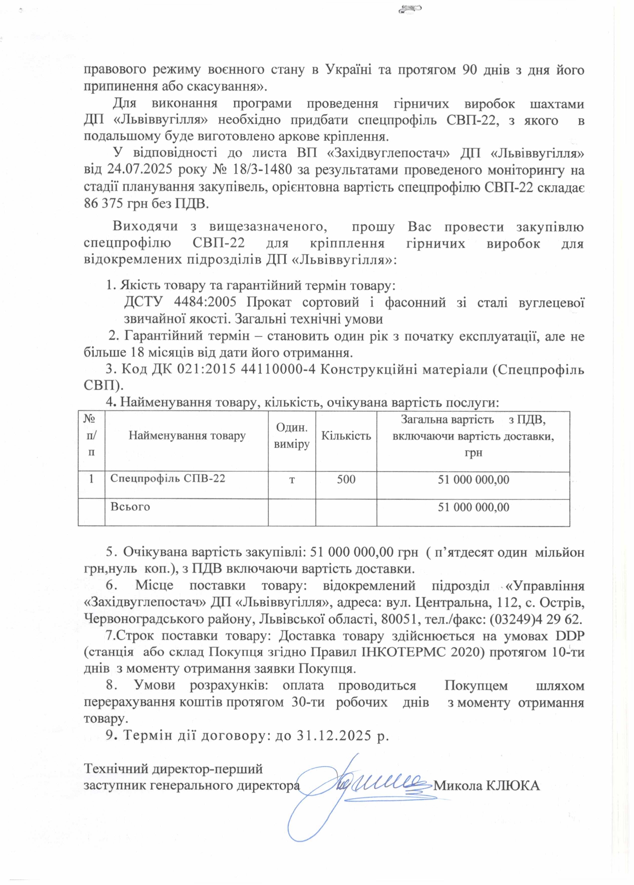 ДП «Львіввугілля» оголосило процедуру конкурентної закупівлі.