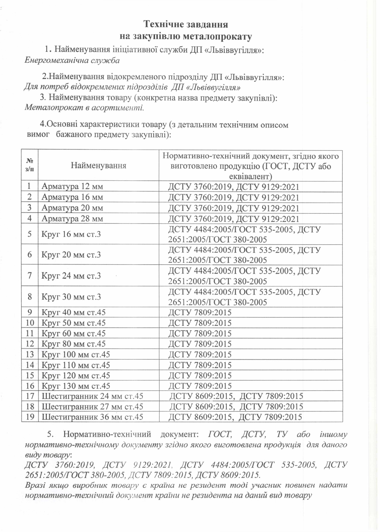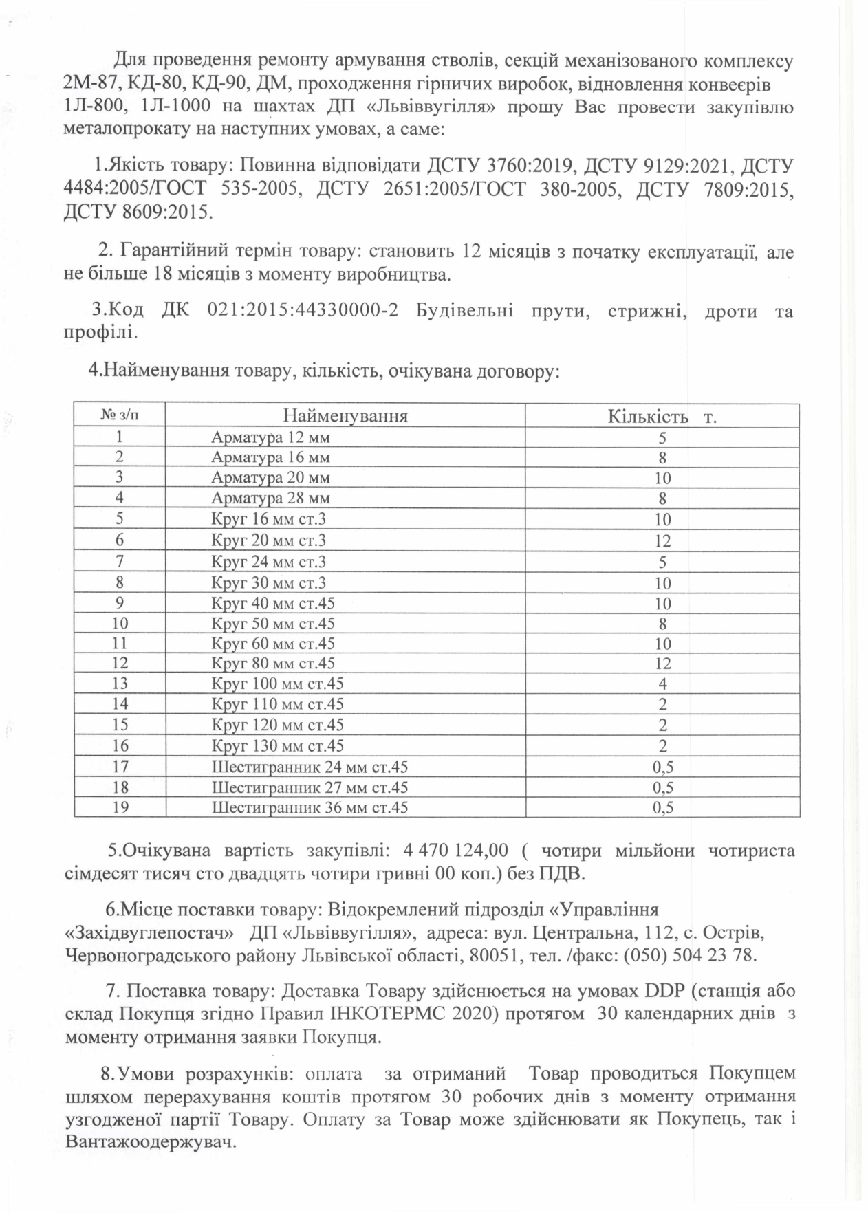 ДП «Львіввугілля» оголосило процедуру конкурентної закупівлі.