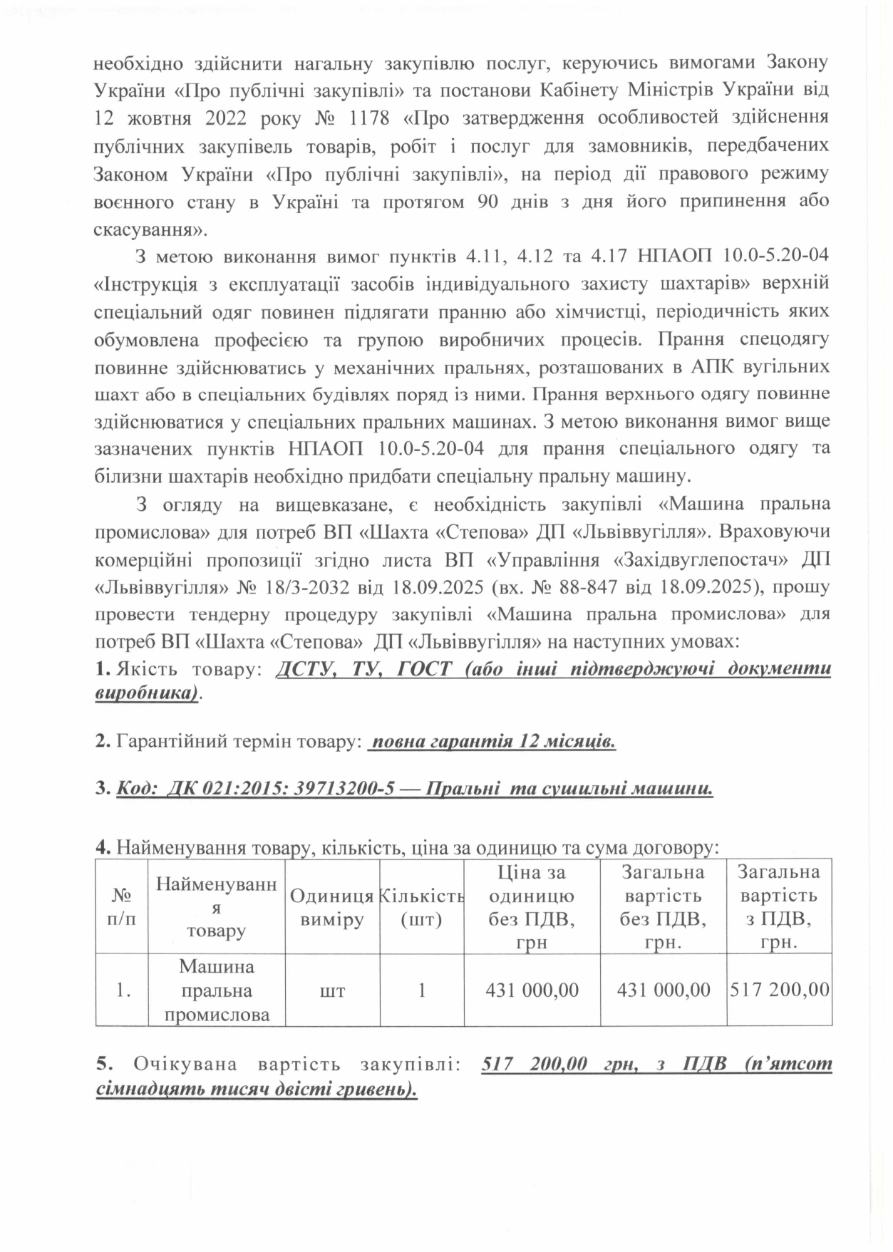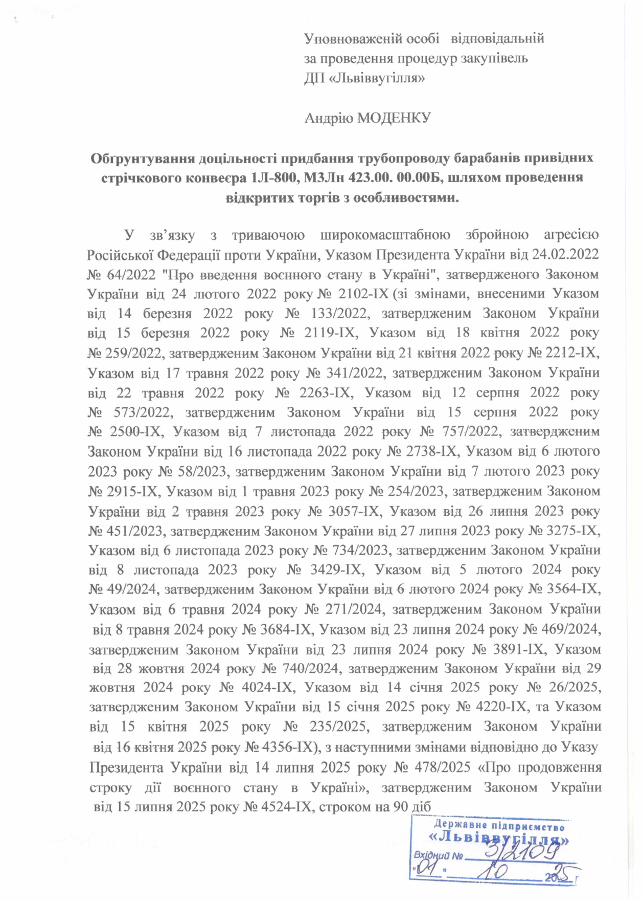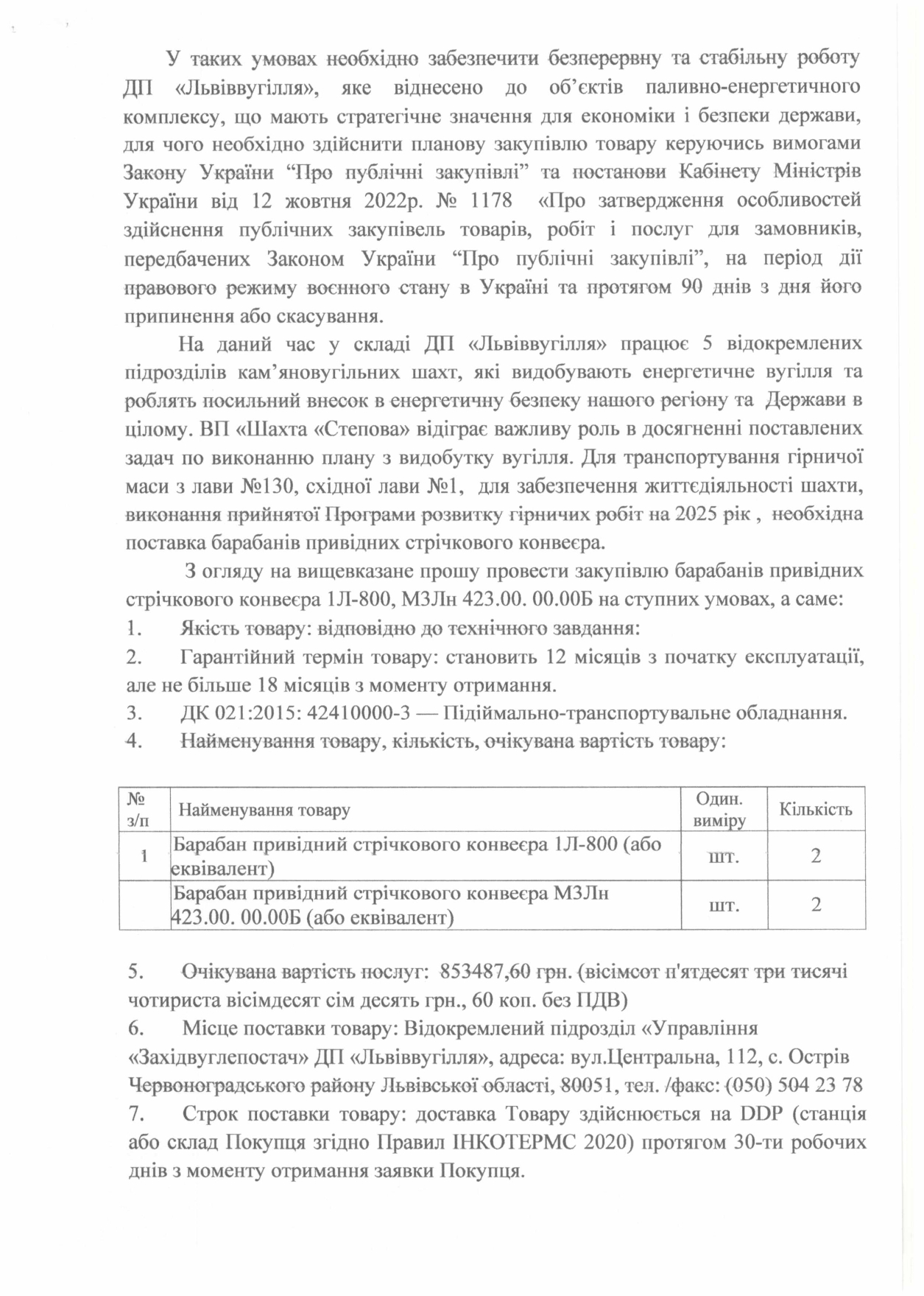 ДП «Львіввугілля» оголосило конкурентної процедуру закупівлі.