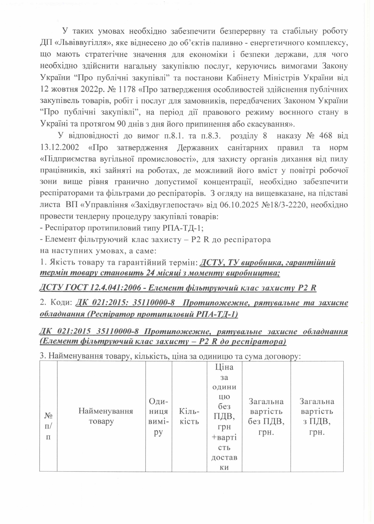 ДП «Львіввугілля» оголосило конкурентної процедуру закупівлі.