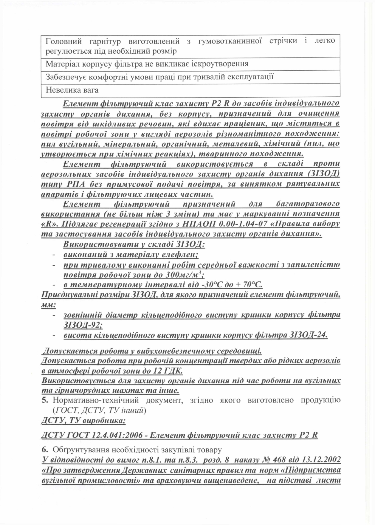 ЕЛЕМЕНТИ ФІЛЬТРУЮЧІ, РЕСПІРАТОРИ ПРОТИПИЛОВІ