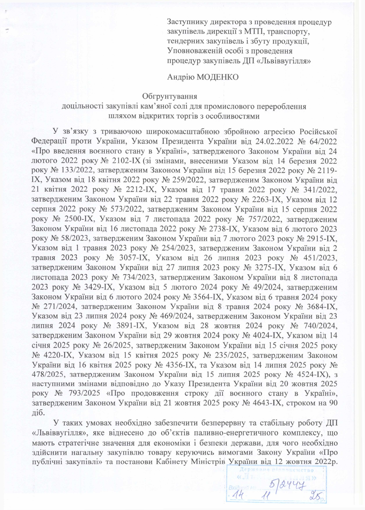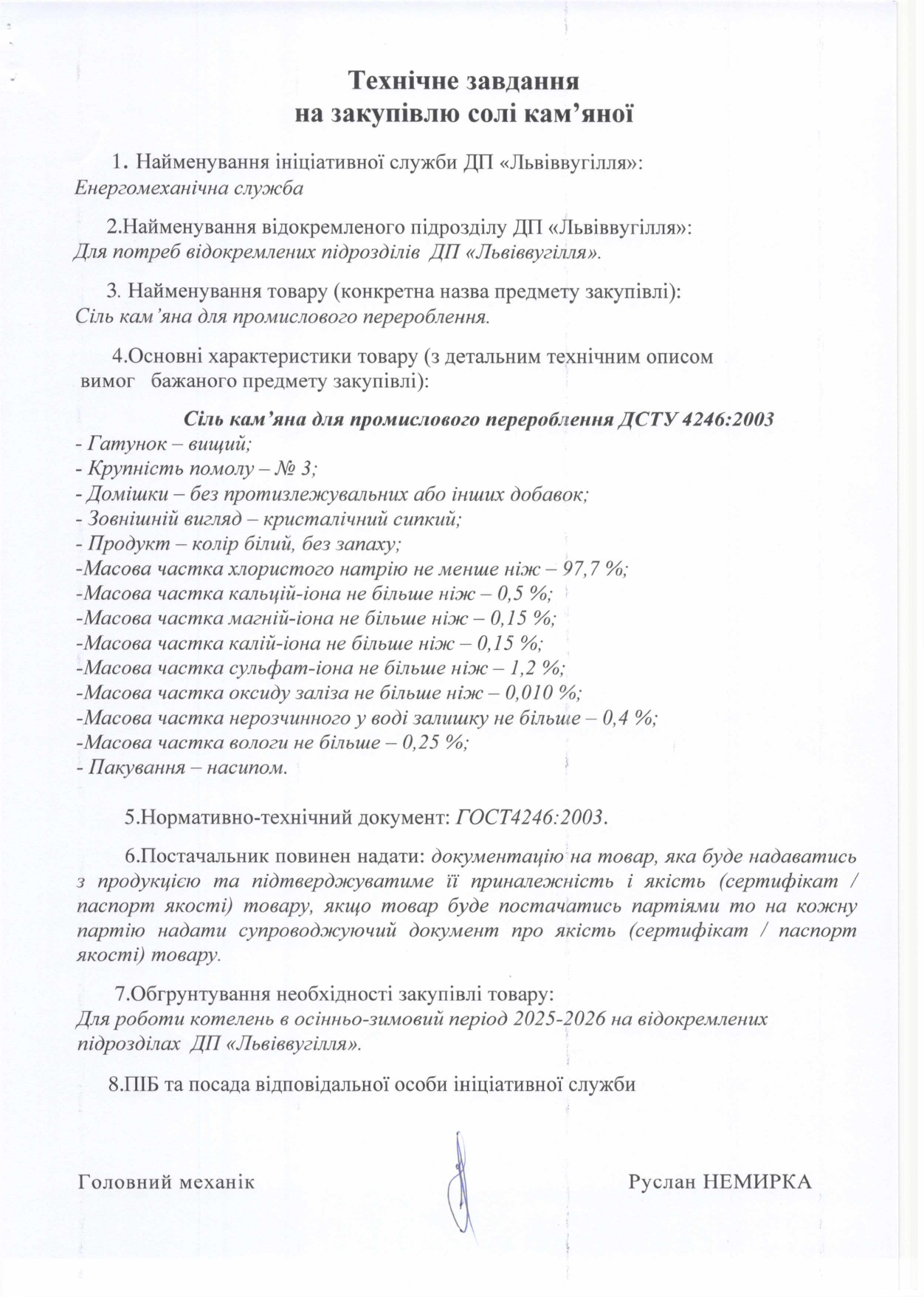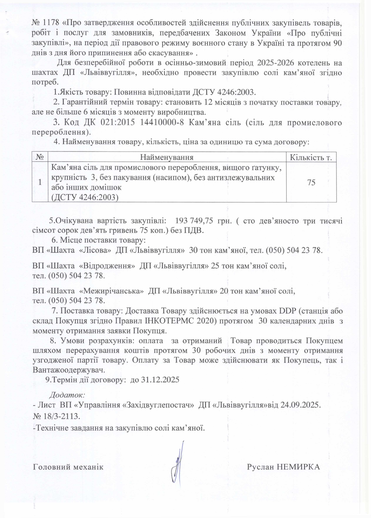 ДП «Львіввугілля» оголосило конкурентної процедуру закупівлі.