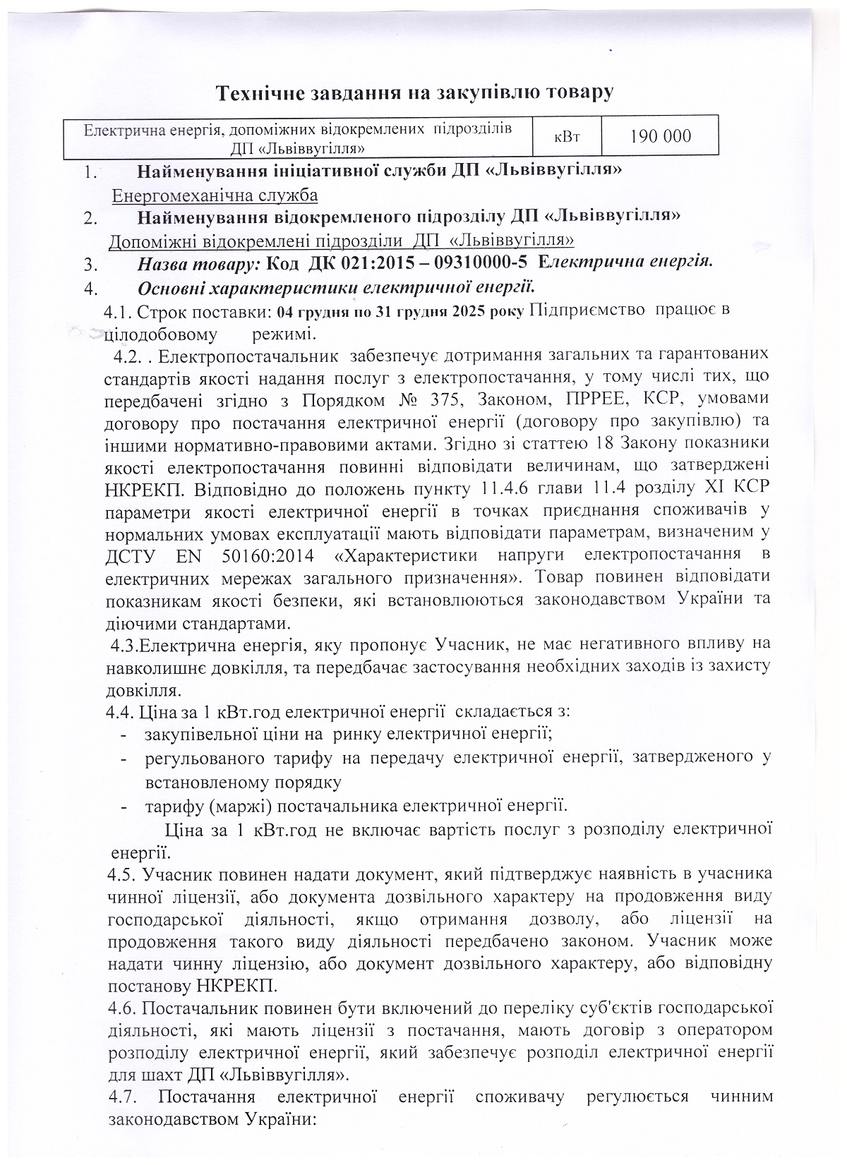 ДП «Львіввугілля» оголосило конкурентної процедуру закупівлі.