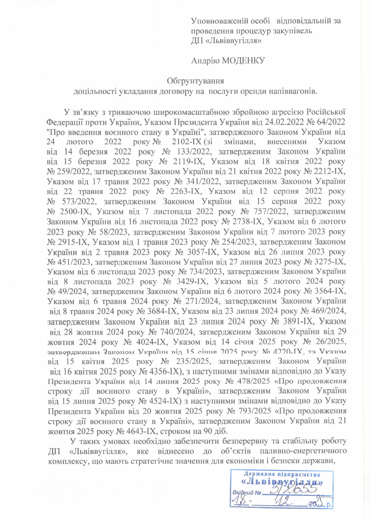 ДП «Львіввугілля» оголосило конкурентної процедуру закупівлі.