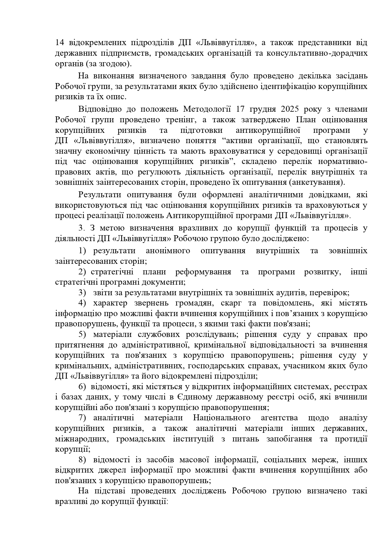 Розпочато публічне обговорення проєкту Антикорупційної програми ДП «Львіввугілля» на 2026-2028 роки.
