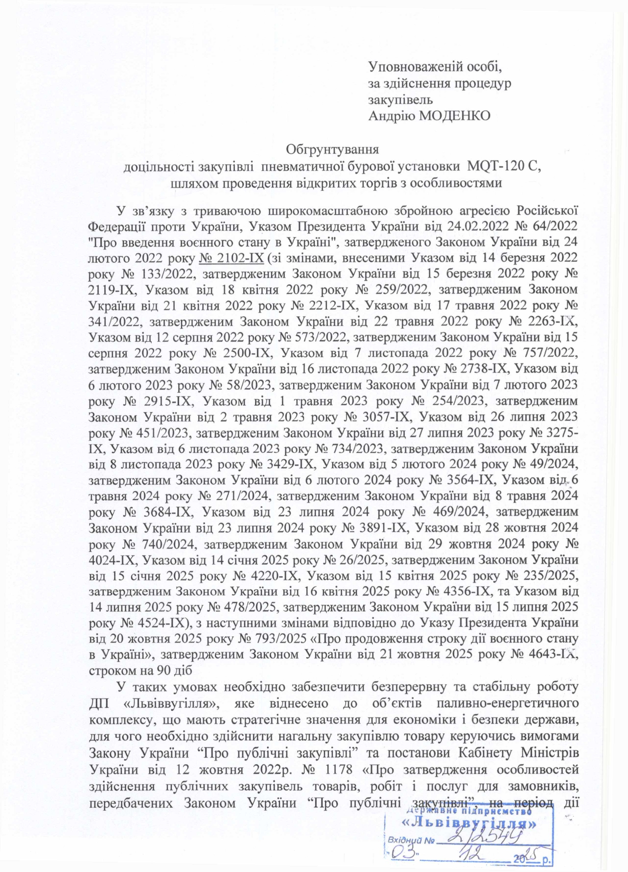 ДП «Львіввугілля» оголосило конкурентної процедуру закупівлі.