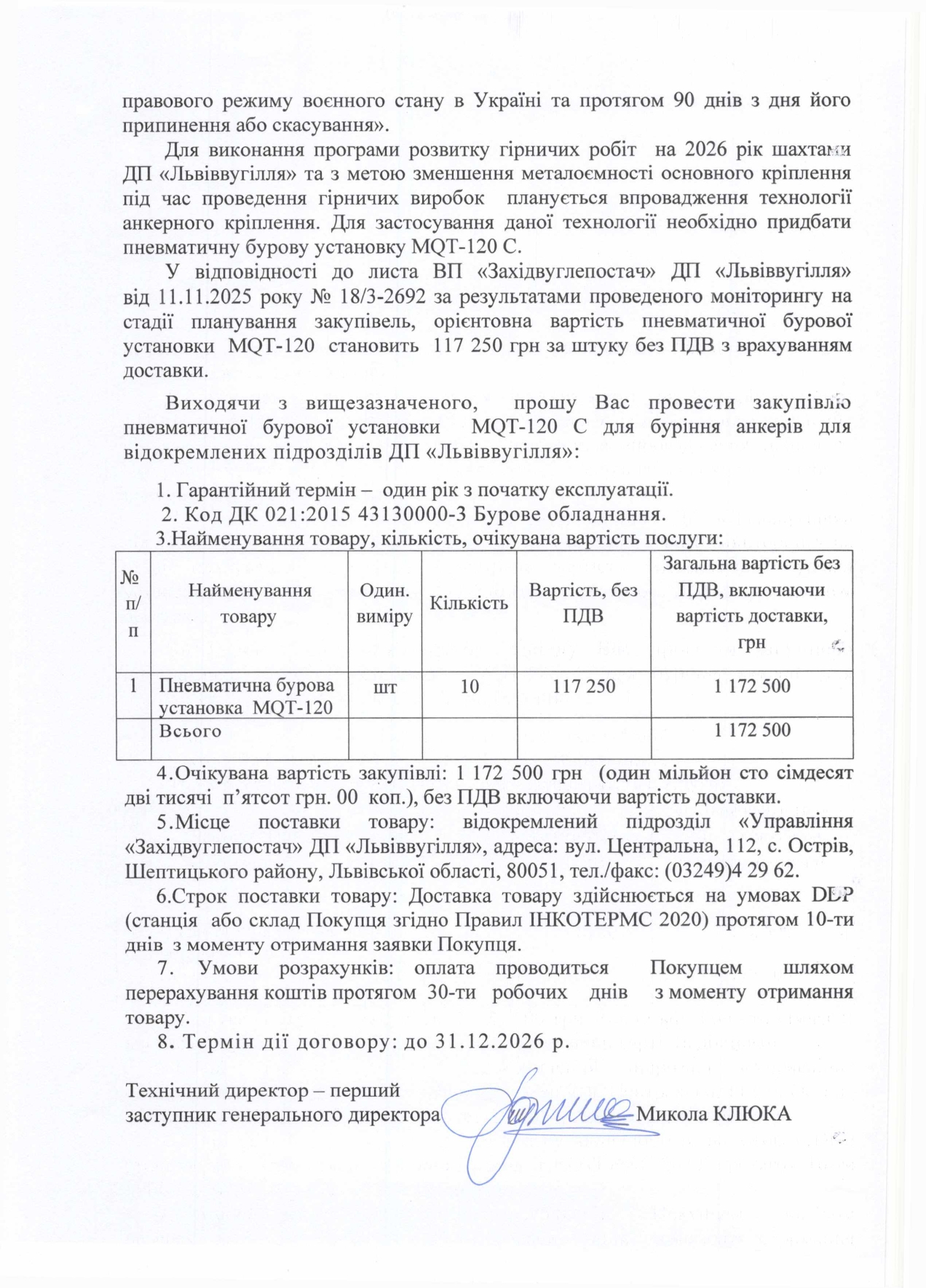 Очікувана вартість: 1 172 500,00 грн без ПДВ