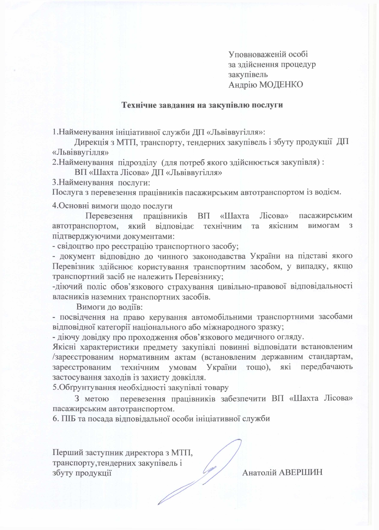 ПЕРЕВЕЗЕННЯ ПРАЦІВНИКІВ ВП “ШАХТА “ЛІСОВА” ДП “ЛЬВІВВУГІЛЛЯ” ДО МІСЦЯ РОБОТИ ЗА ГРАФІКОМ