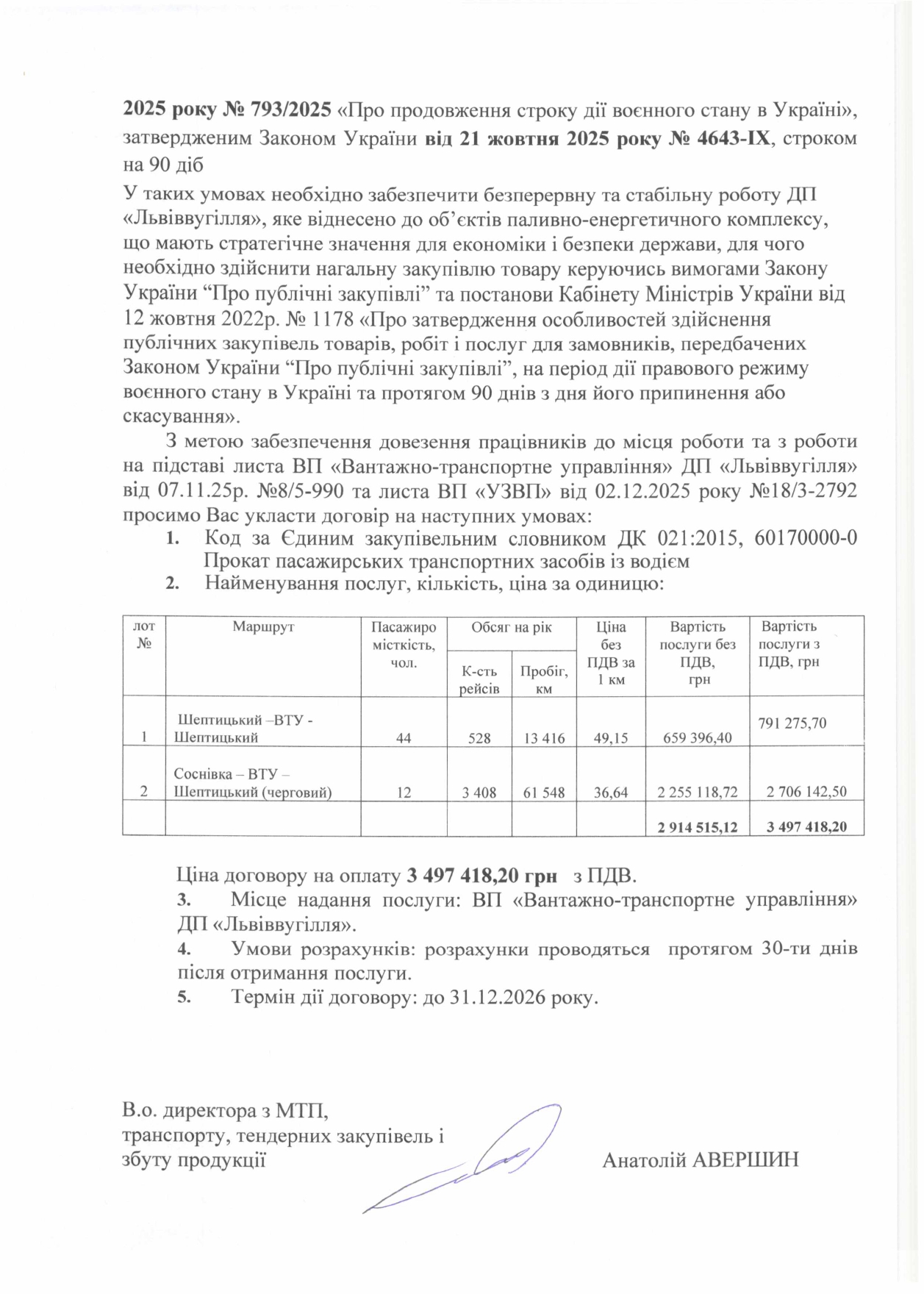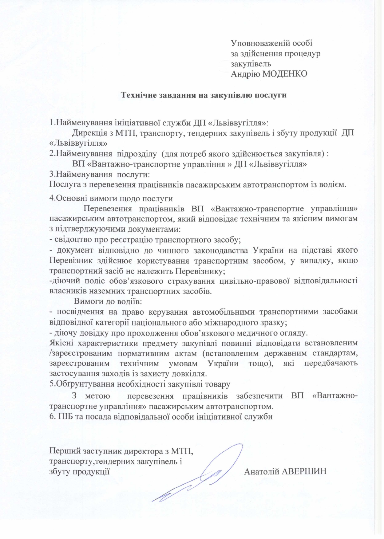 ПЕРЕВЕЗЕННЯ ПРАЦІВНИКІВ ВП “ВАНТАЖНО-ТРАНСПОРТНЕ УПРАВЛІННЯ” ДП “ЛЬВІВВУГІЛЛЯ” ДО МІСЦЯ РОБОТИ ЗА ГРАФІКОМ