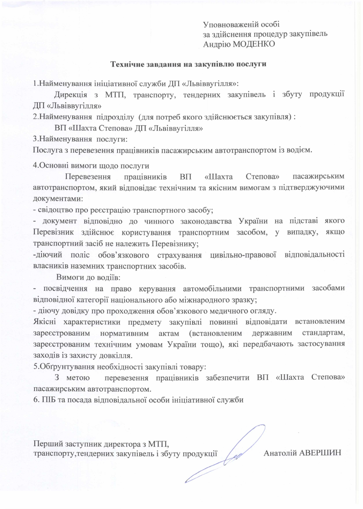 ПЕРЕВЕЗЕННЯ ПРАЦІВНИКІВ ВП “ШАХТА “СТЕПОВА” ДП “ЛЬВІВВУГІЛЛЯ” ДО МІСЦЯ РОБОТИ ЗА ГРАФІКОМ