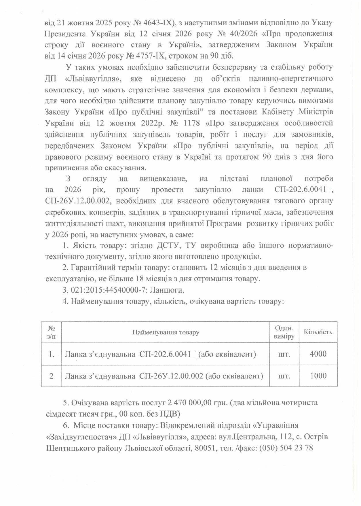 ДП «Львіввугілля» оголосило конкурентної процедуру закупівлі.