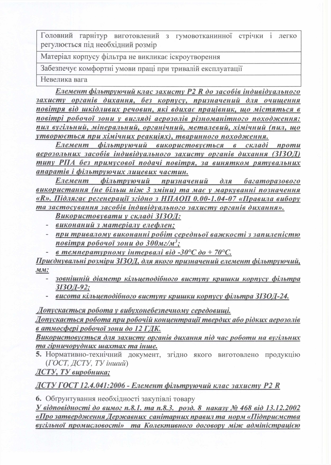 ЕЛЕМЕНТИ ФІЛЬТРУЮЧІ, РЕСПІРАТОРИ ПРОТИПИЛОВІ
