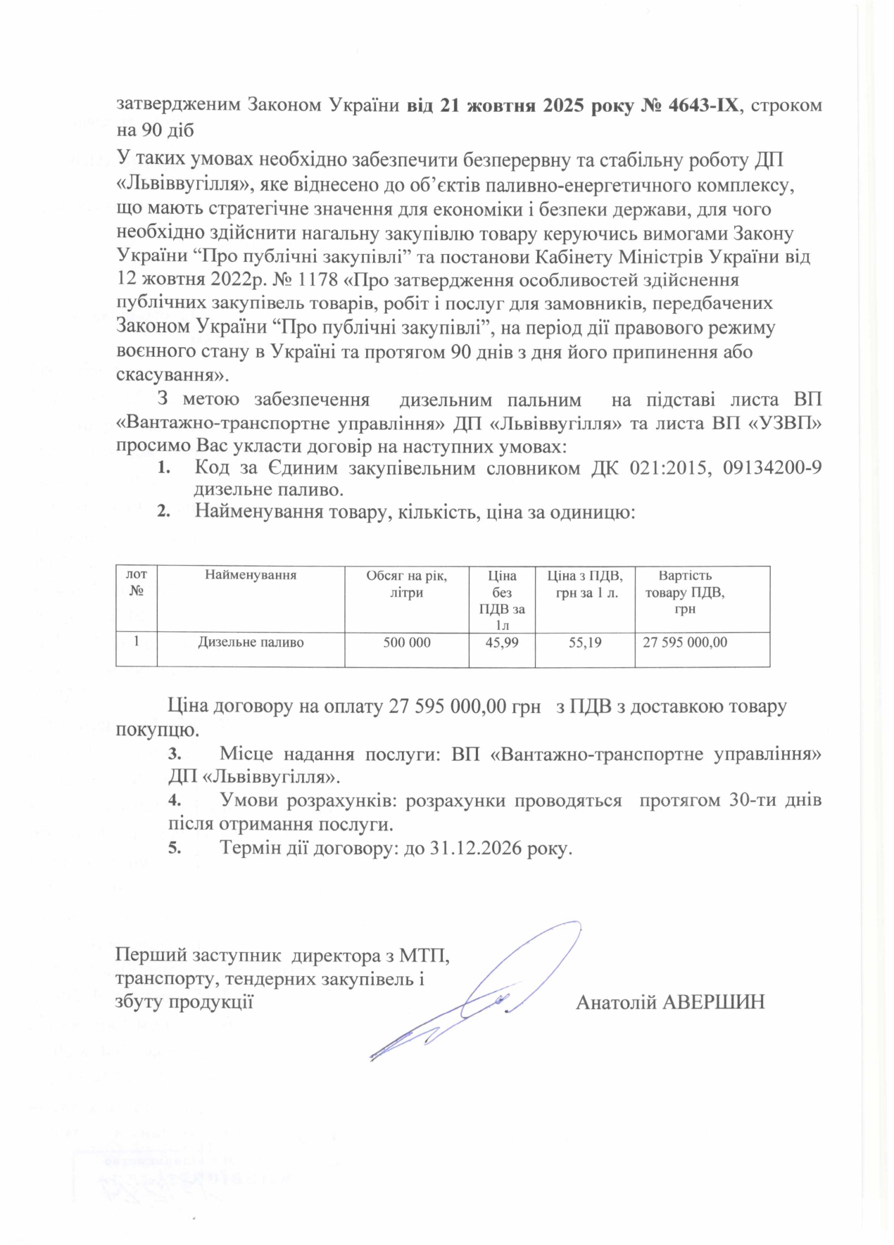 Очікувана вартість:                    22 995 833,34 грн  без ПДВ
