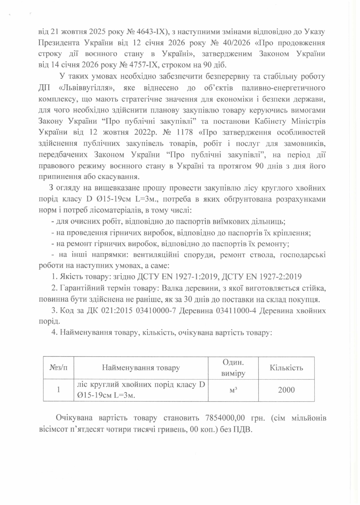 Очікувана вартість: 7 854 000,00 грн без ПДВ