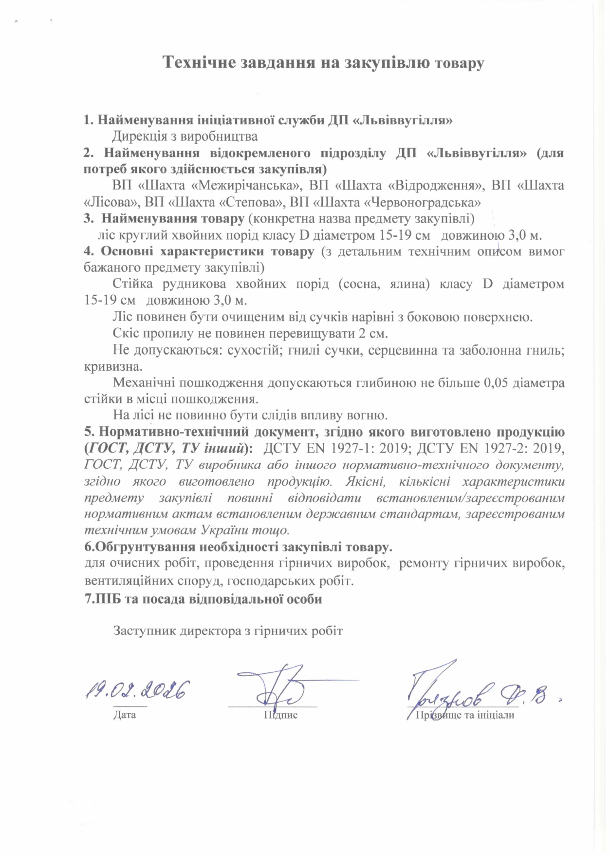 ДП «Львіввугілля» оголосило конкурентної процедуру закупівлі.