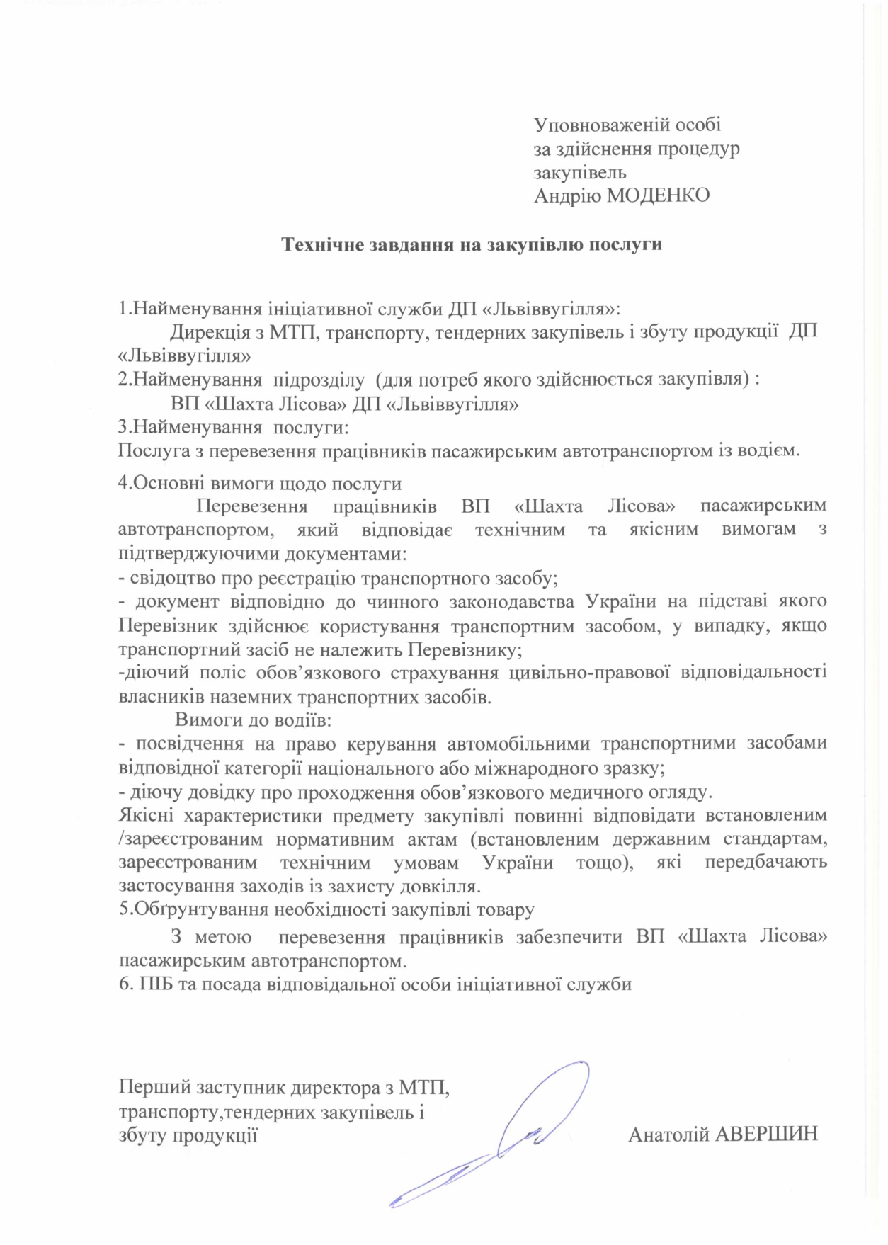 Перевезення працівників ВП “Шахта”Лісова” ДП “Львіввугілля” до місця роботи за графіком