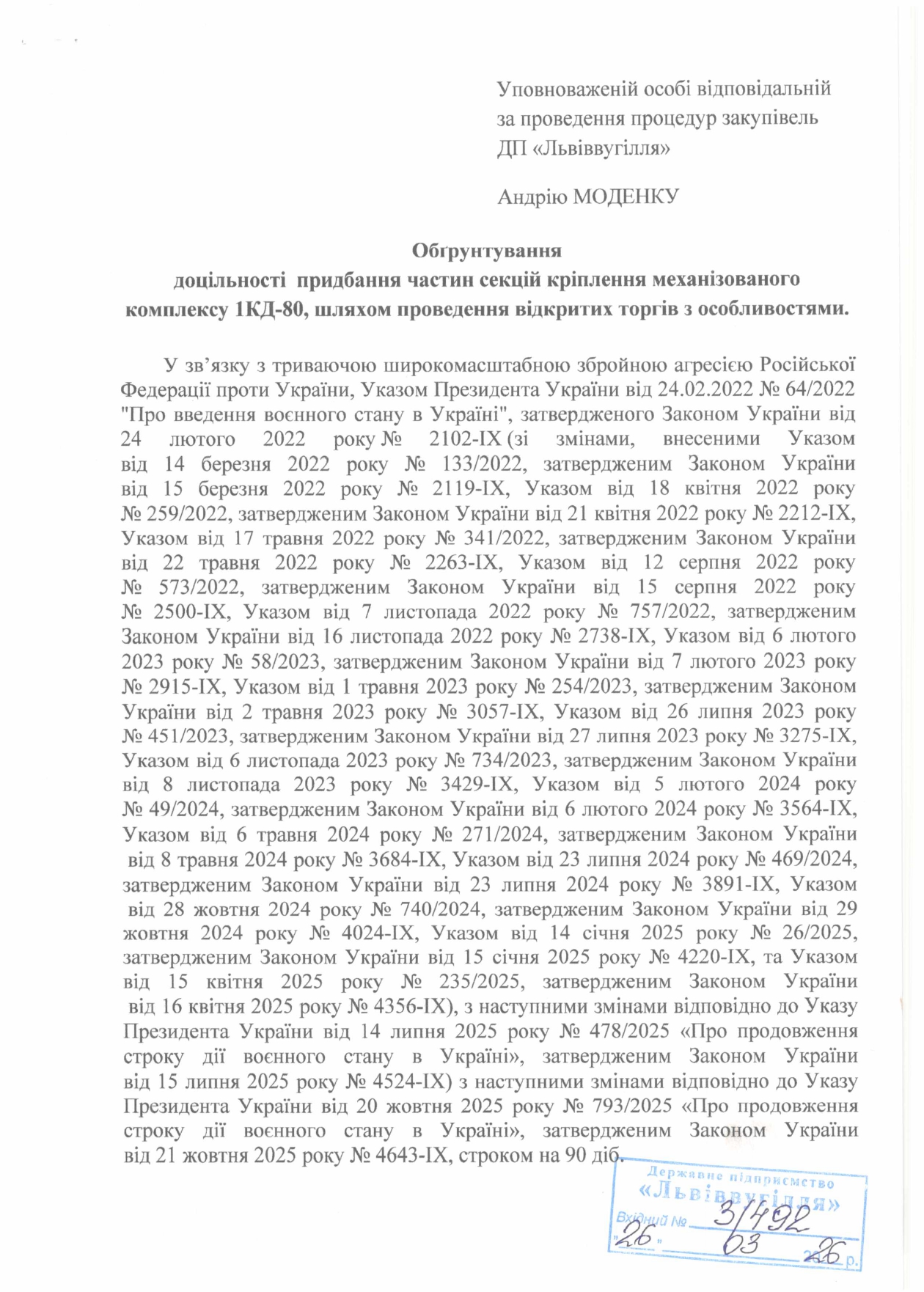 Очікувана вартість:             1 220 244,00 грнОбгрунтування доцільності закупівлі частин секцій механізованого кріплення 1КД-80 (1)_page-0001 Обгрунтування доцільності закупівлі частин секцій механізованого кріплення 1КД-80 (1)_page-0002 Обгрунтування доцільності закупівлі частин секцій механізованого кріплення 1КД-80 (1)_page-0003Технічне завдання на закупівлю частин секцій механізованого кріплення 1КД-80 (1)_page-0001 Технічне завдання на закупівлю частин секцій механізованого кріплення 1КД-80 (1)_page-0002 Технічне завдання на закупівлю частин секцій механізованого кріплення 1КД-80 (1)_page-0003 Технічне завдання на закупівлю частин секцій механізованого кріплення 1КД-80 (1)_page-0006