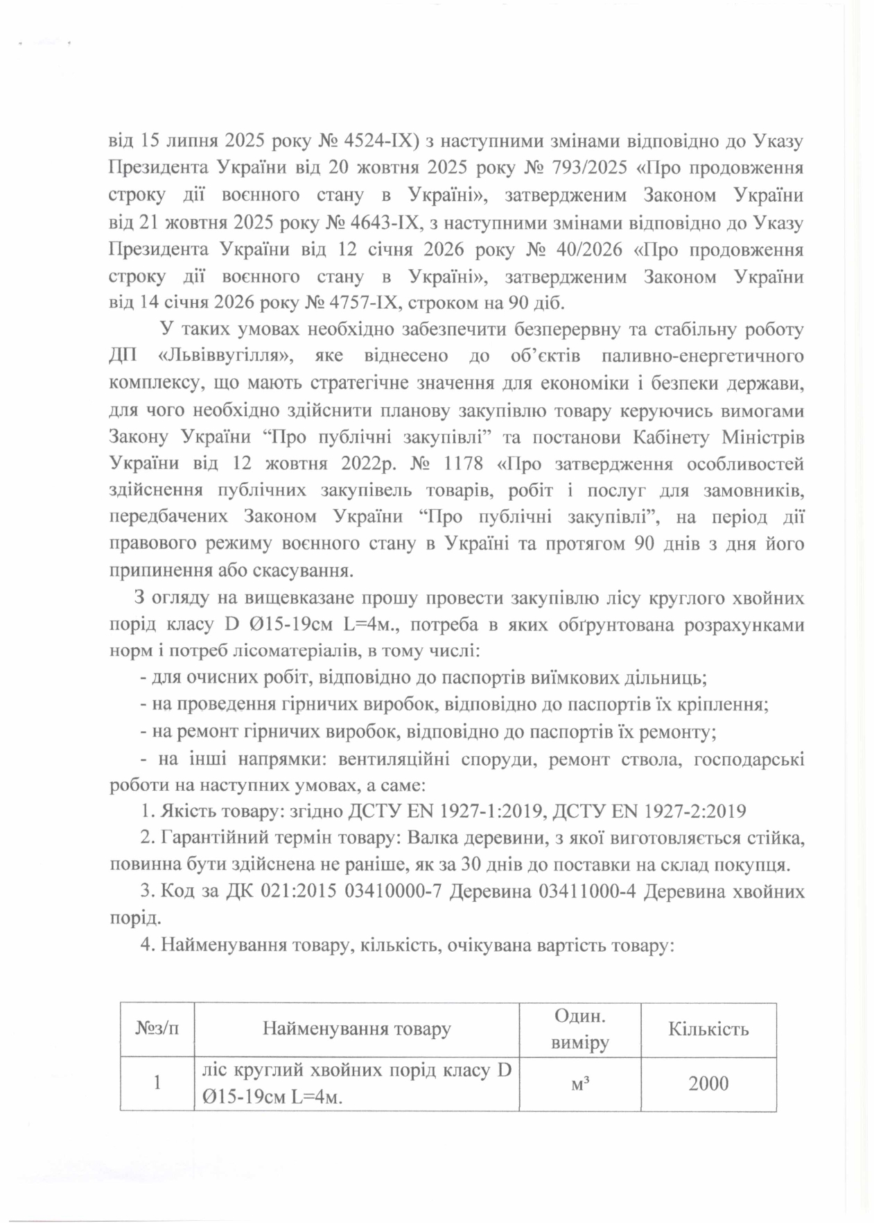 ДП «Львіввугілля» оголосило конкурентної процедуру закупівлі.