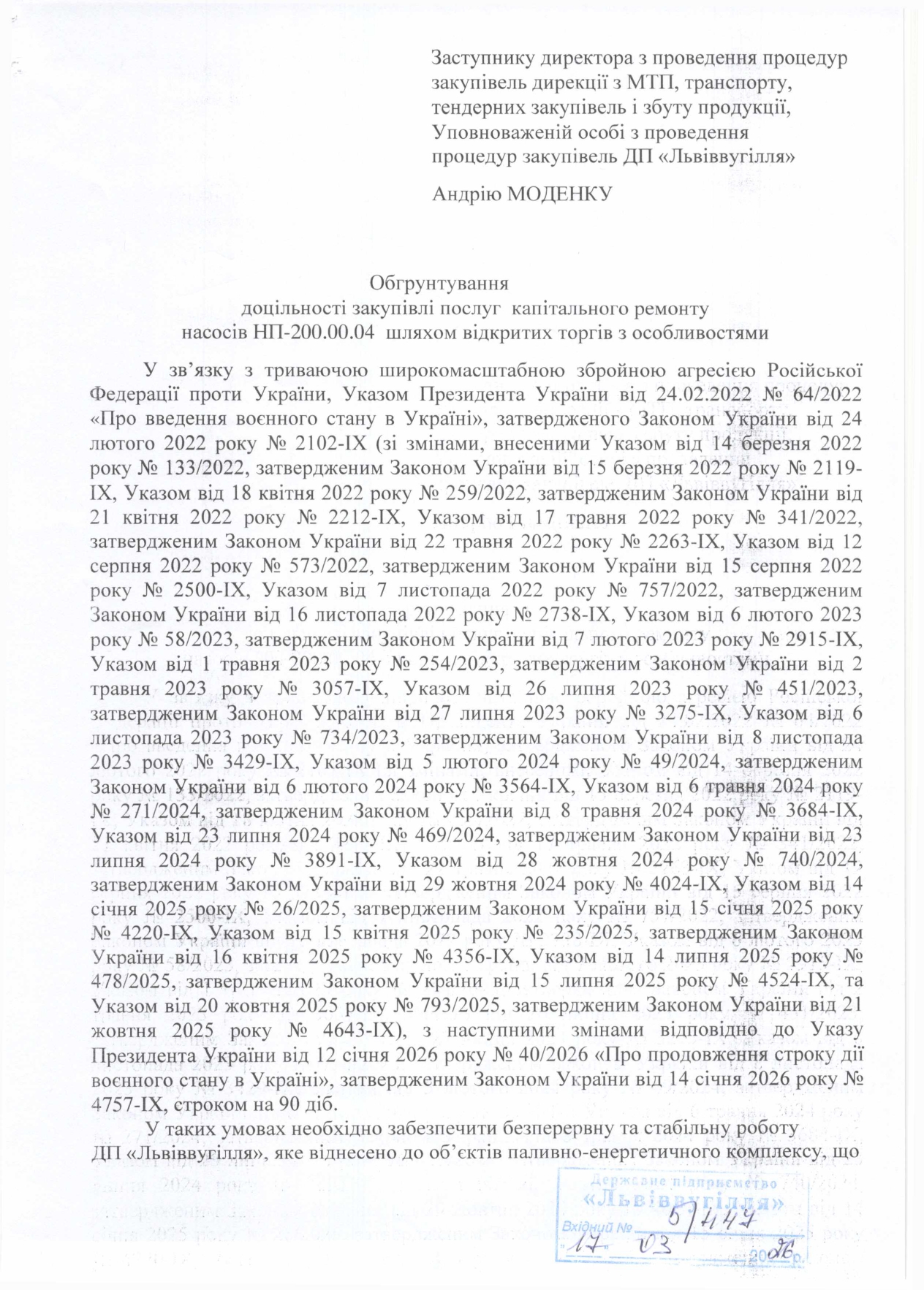 ДП «Львіввугілля» оголосило конкурентної процедуру закупівлі.