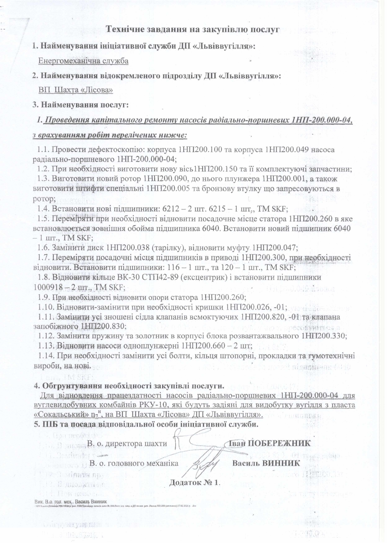 ПОСЛУГИ З РЕМОНТУ ГІДРАВЛІЧНИХ НАСОСІВ НП-200.000.04