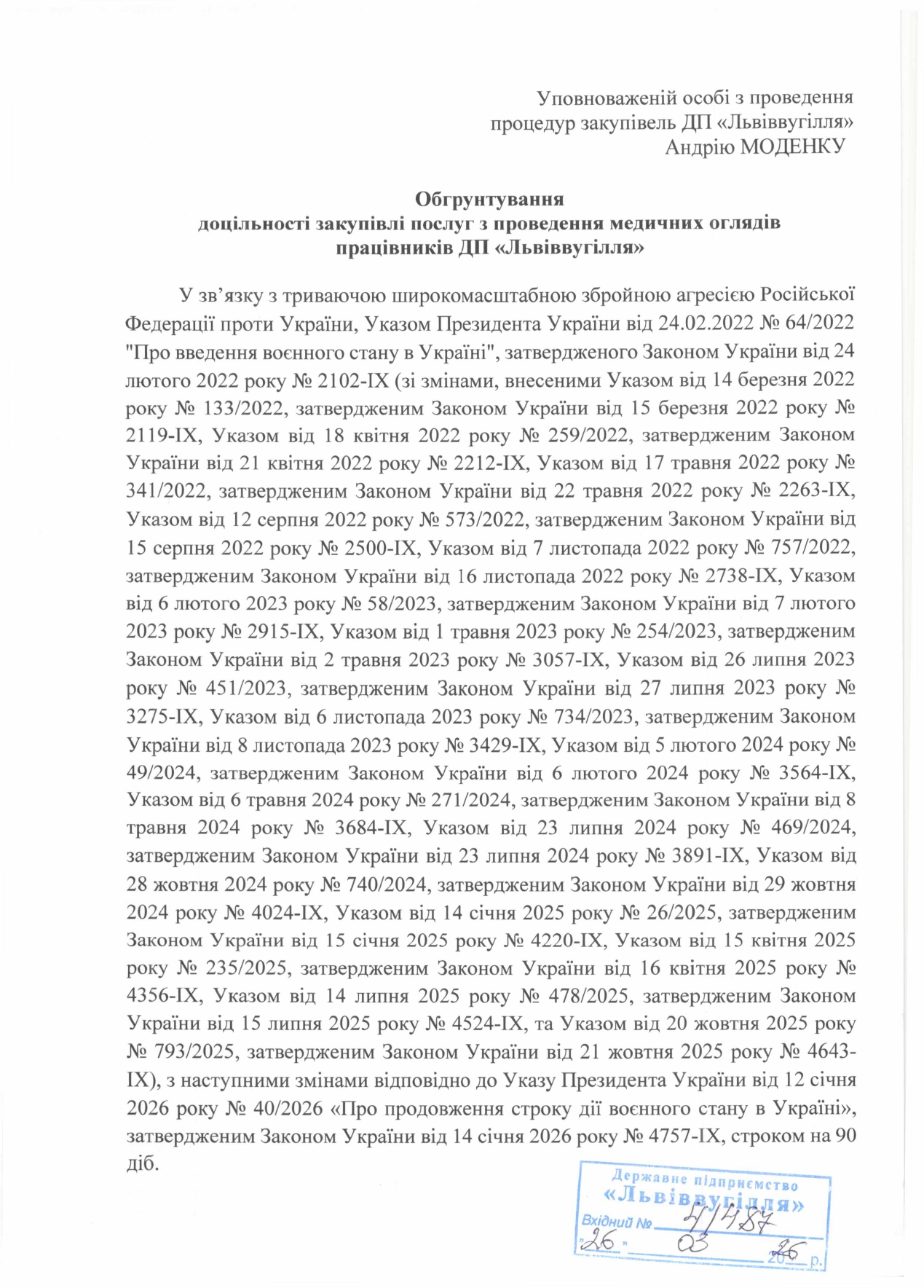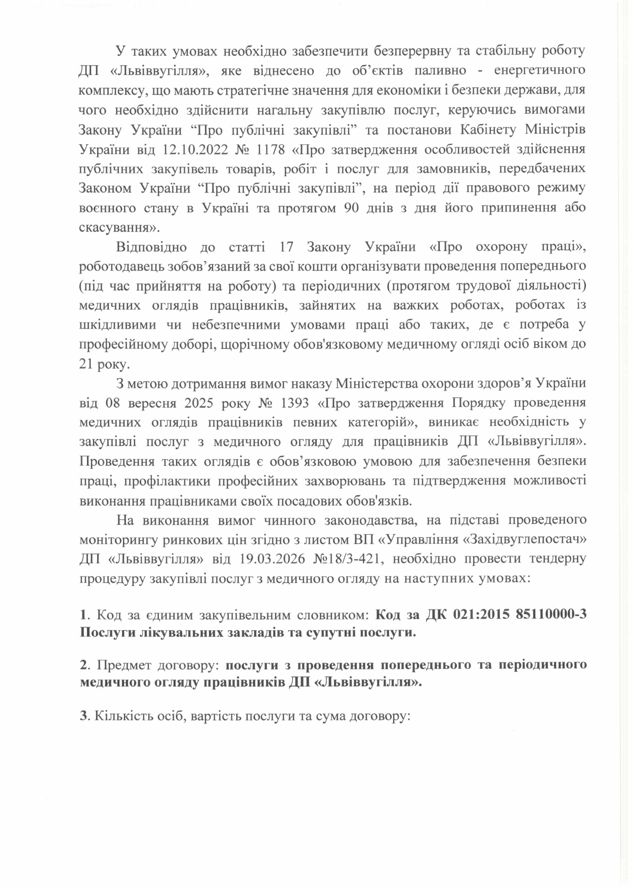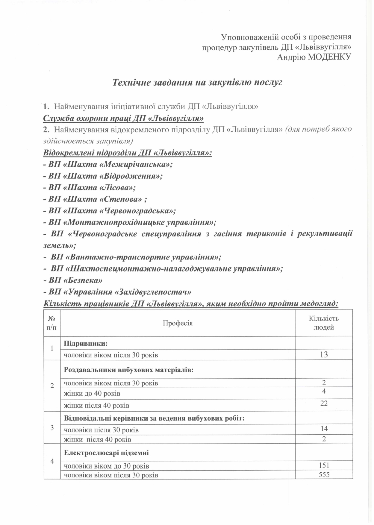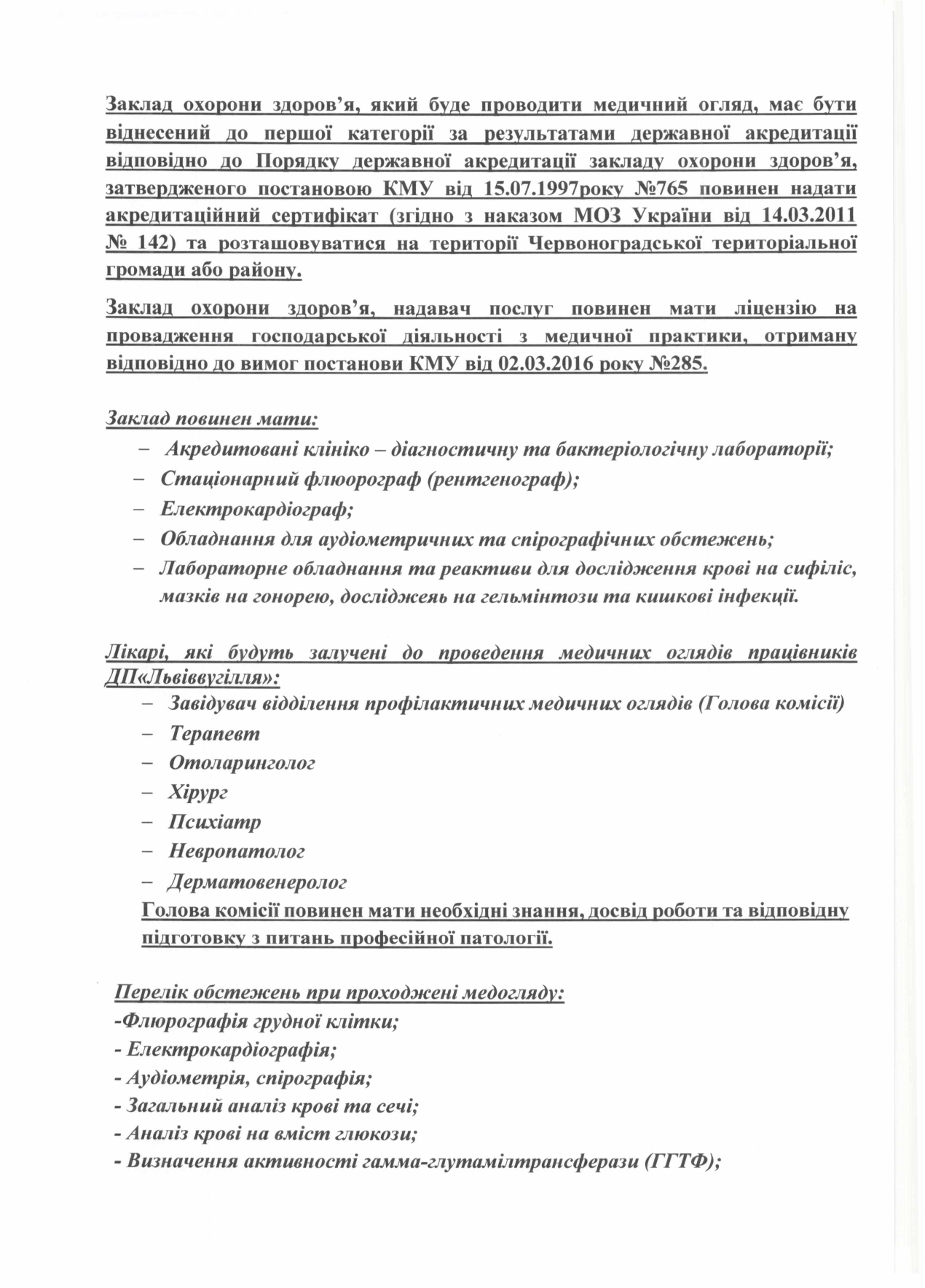 МЕДИЧНИЙ ОГЛЯД ПРАЦІВНИКІВ ДП «ЛЬВІВВУГІЛЛЯ» (ВП ДП «ЛЬВІВВУГІЛЛЯ»)