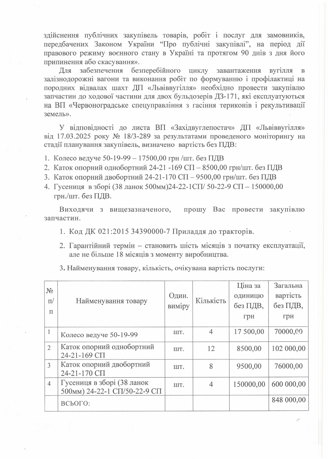ДП «Львіввугілля» оголосило конкурентної процедуру закупівлі.