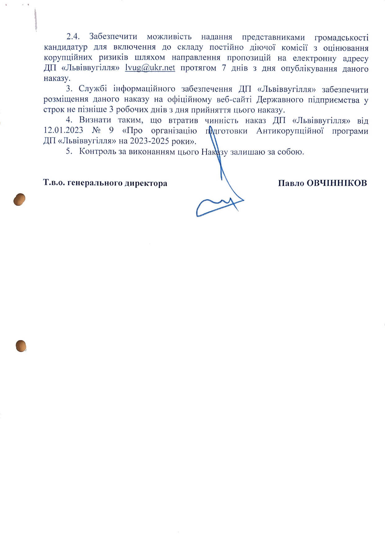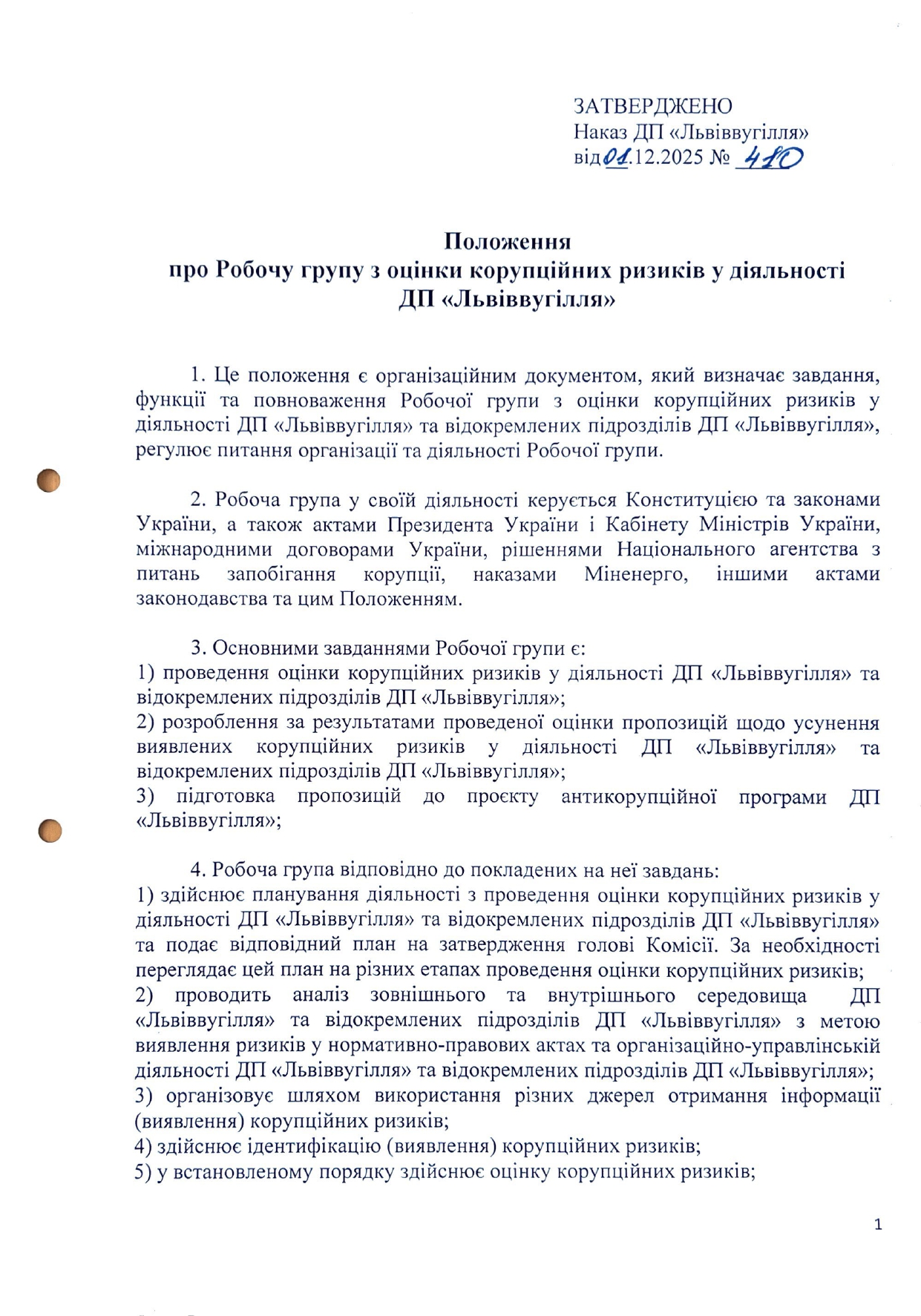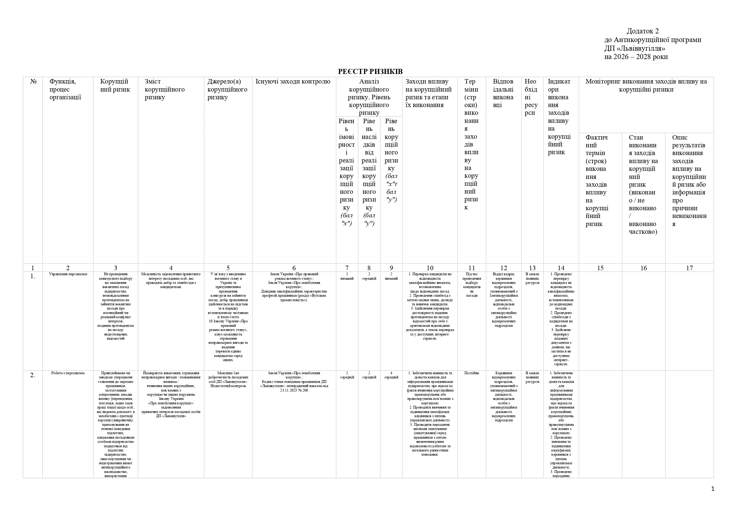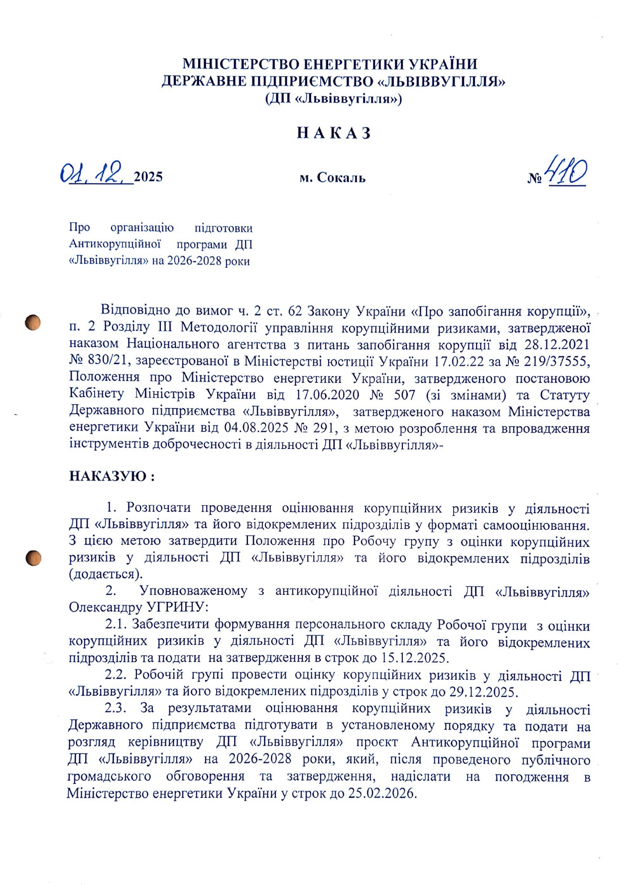 Пропозиції та зауваження до проєкту Антикорупційної програми ДП «Львіввугілля» на 2026-2028 роки можна надати до 12.01.2026 письмово на адресу підприємства (вул. Б.Хмельницького, 26, м. Сокаль, Шептицький район, Львівська… Читати далі